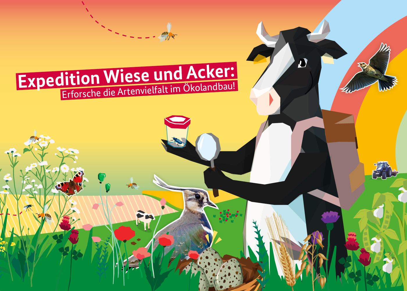 Dieses Jahr dreht sich alles um das Thema: „Expedition Wiese und Acker: Erforsche die Artenvielfalt im Ökolandbau!“. Artenvielfalt ist bunt, lebendig und steckt voller spannender Zusammenhänge. Auf eurer Expedition erfahrt ihr, warum sie so wichtig ist: Ohne Vielfalt kein gesundes Ökosystem.