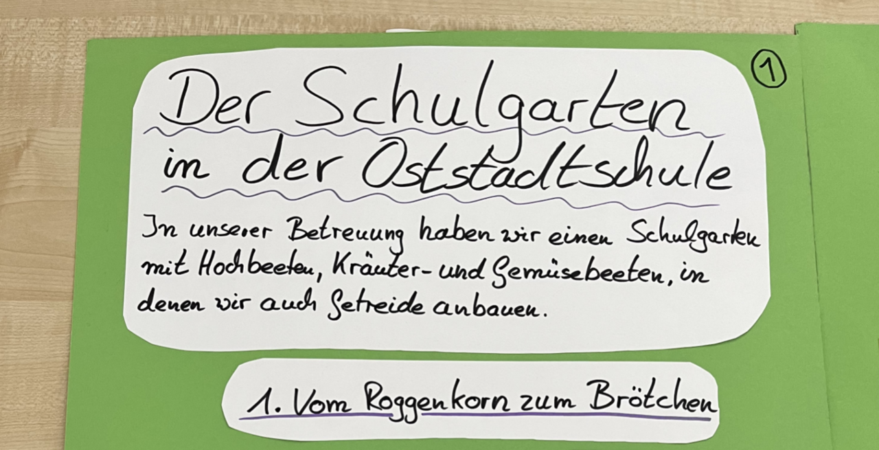 Wandzeitung “Der Schulgarten in der Oststadtschule” bestehend aus sechs Plakaten