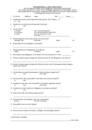 Dreiteiliges Projekt - Essen in der Schule