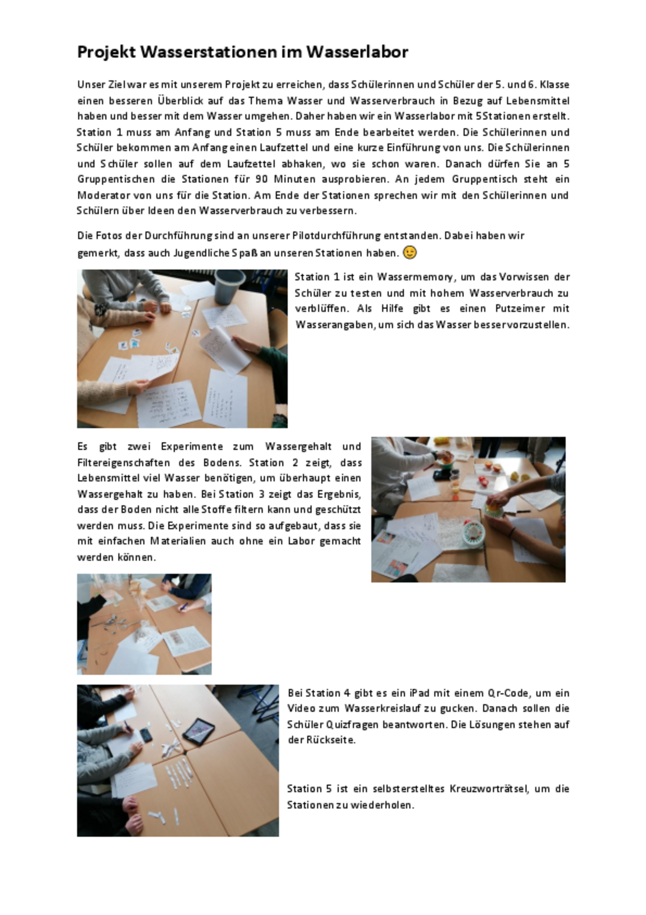 Projektdokumentation, Quiz, Spiel „Wasserstationen im Wasserlabor"