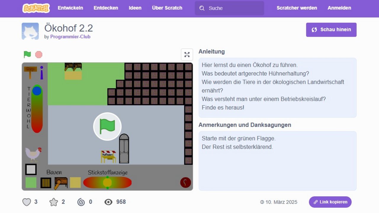 Online-Spiel „Ökohof: Lernspiel zur ökologischen Landwirtschaft“